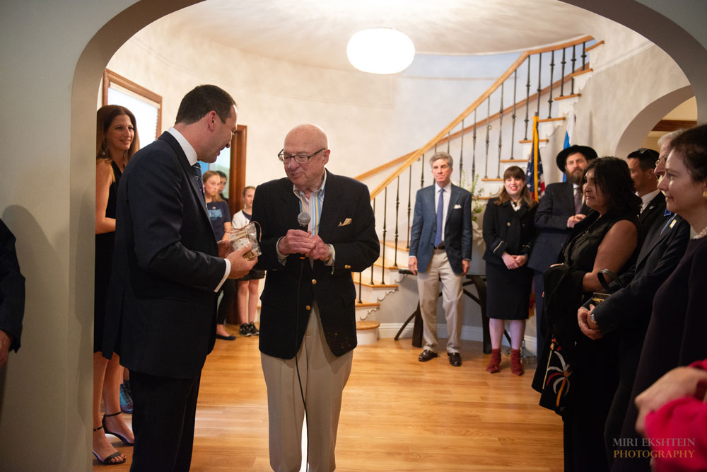 Fred Levinson was given the Justice and Protection Mezuzah. “Fred risked everything to stand up and fight for Israel’s statehood. We wanted to give him a piece of art that he will treasure for years to come in honor of his incredible personal service and sacrifice to the State of Israel.” Blecher stated. In 1948, Fred Levinson was nineteen years old and in college at the University of Oklahoma when the State of Israel was founded. He had already served in the Military Police of the 7th Division stationed in Korea. Shortly after the State of Israel was recognized, with a combination of commitment to the state of Israel, a deep reaction to the Holocaust and a desire to live a life of action to stand up for his ideals, Fred and his younger brother Mort decided to volunteer to the Israeli armed forces. According to Levinson, the whole experience was one of the highlights of my life. It was an opportunity for just ordinary people like us to do something significant.”