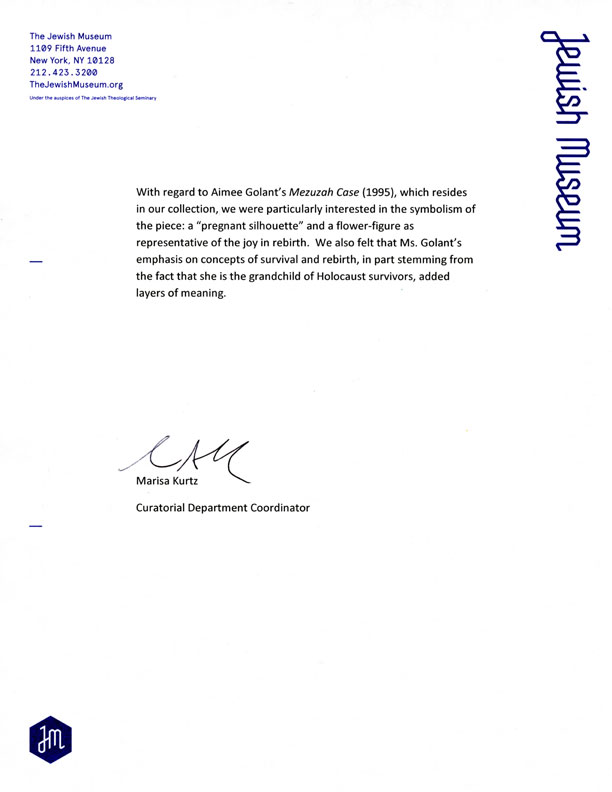 Jewish Museum New York Statement about Aimee’s piece in their permanent collection:
