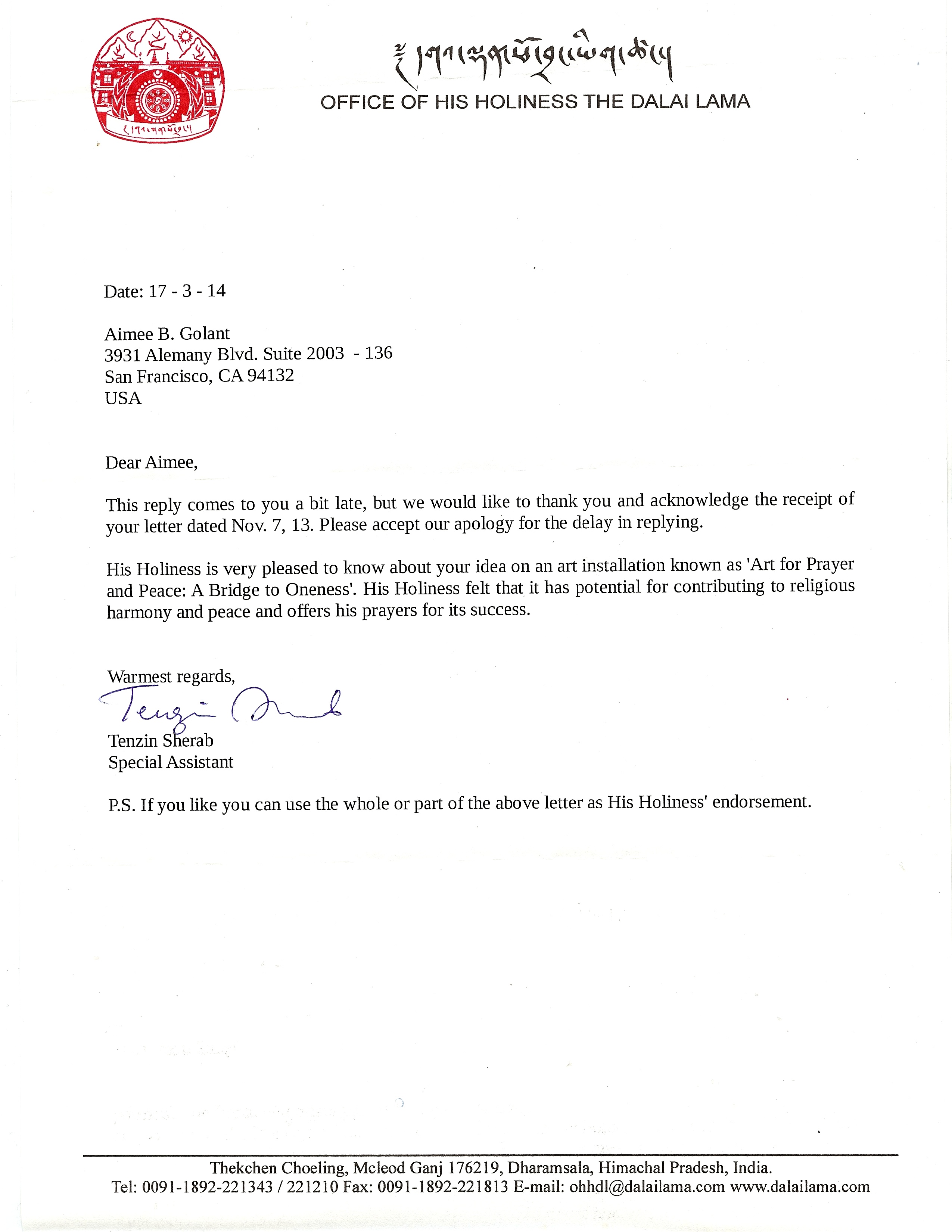 His Holiness the Dalai Lama endorses ‘Art for Prayer and Peace:
