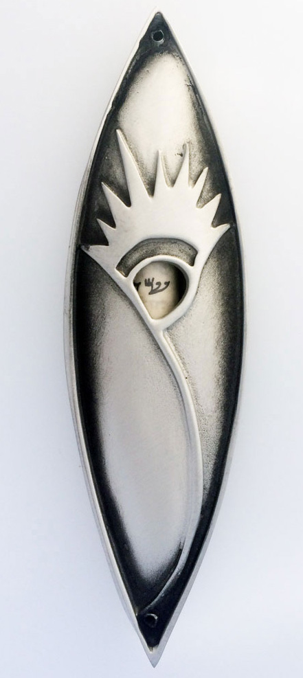This mezuzah was designed exclusively for Ramah Darom (Ramah of the South) which is a world-class Jewish overnight camp and retreat center in the foothills of the Blue Ridge Mountains near Clayton, Georgia. Ramah Darom’s mission is to offer exceptional experiences in Jewish living and learning to youth, adults, families and communities year-round. The inspiring scenery, beautiful facilities and comfortable lodging provide the perfect landscape for fun and meaningful Jewish experiences. This two-part mezuzah resembles the sunrise/sunset over the mountains and signature waterfall. To see how this piece was created, please visit this BLOG post.
