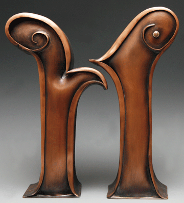 I designed crowns to reflect the bold new direction taken by the Women’s Torah Project, which opens the door for women to break the time-honored tradition that allows only men to scribe the Torah. These Torah adornments combine the best of tradition. Starting with the pomegranate, the sacred Shiv’at Ha-Minim , it is mentioned in Exodus as the symbol of both righteousness and fruitfulness. Here, I convey them in warm earth tone materials – copper and a brown diamond, accented with silver and 22k gold. At the same time I have created a clean, purposeful and sculptural design which is intentionally contemporary and reflective of the dialogue evoked by the Project. In my own life, as a grandchild of Holocaust survivors, and full time metal artist, I have devoted my artistic career to making Judaica that will preserve, illuminate and share Jewish traditions while honoring women building pathways to new and exciting futures. View the article in the San Francisco Chronicle.