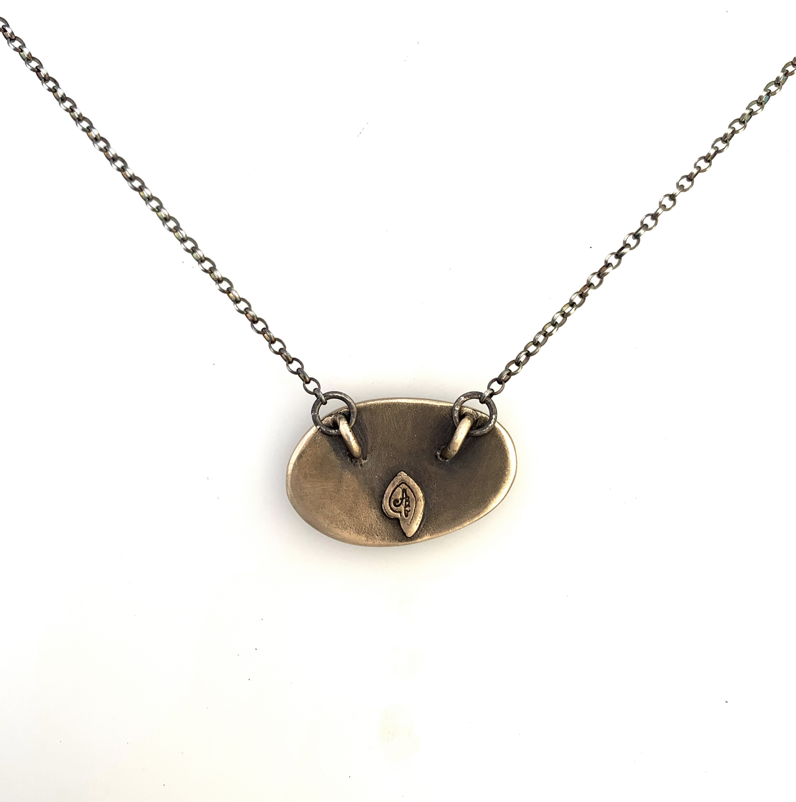 This unisex bronze necklace is inspired by the Jewish Spiritual Path of Mussar and it resembles a stepping stone.  The necklace depicts the powerful Midah (or soul trait) of: Kindness (pronounced Chesed or Hesed)– which is about loving kindness in your daily actions– kindness to self and others.