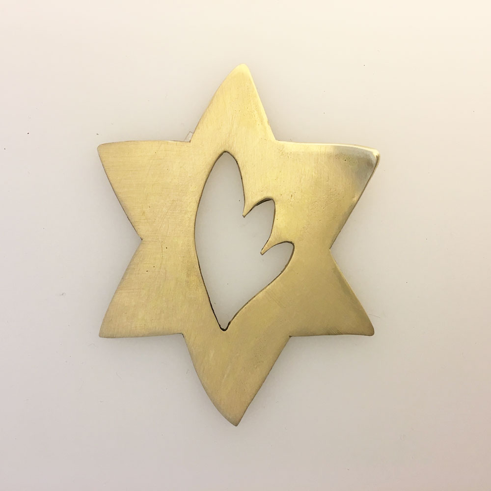 The simple design of the yellow star is in honor of the Jewish people who were forced to wear yellow stars as a Nazi concentration camp badge on their sleeves during the Holocaust. The cut out shape inside the star is of the Hebrew letter shin, which in this case stands for “Shoah” that means Holocaust.